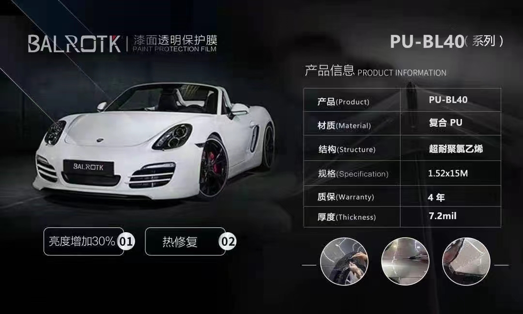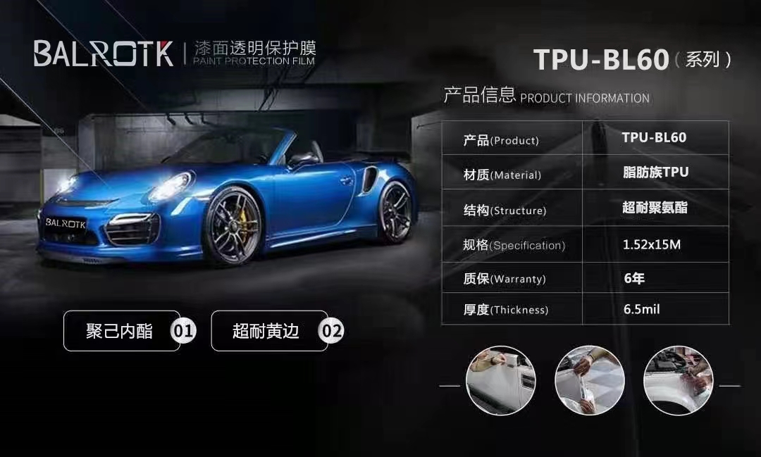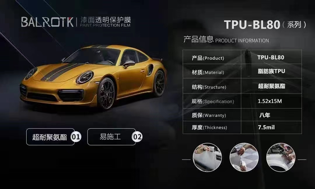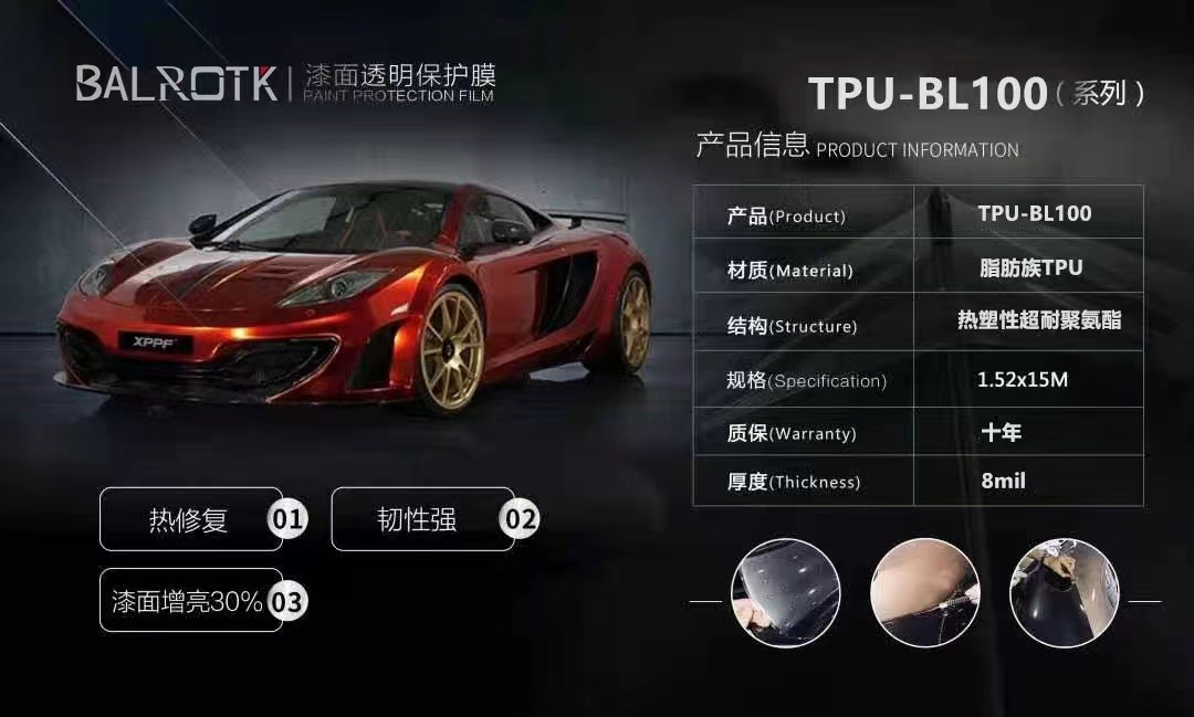 BALROTK专注于渠道建设与推广,并与多家车厂及百强4S店集团建立了战略合作伙伴关系。凭借在中国汽车膜行业二十余年的运营管理经验,通过技术培训、店面指导、资源共享、产品推广、售后扶持等多种方式,帮助合作伙伴实现盈利,带动国内诸多汽车美容店、BALROTK三代车漆保护膜具有产品优势,由阿克苏诺贝尔采用行业光学级聚己内酯型TPU为基材,行业“半融合式涂层”工艺,赋予了它良好的综合性能。